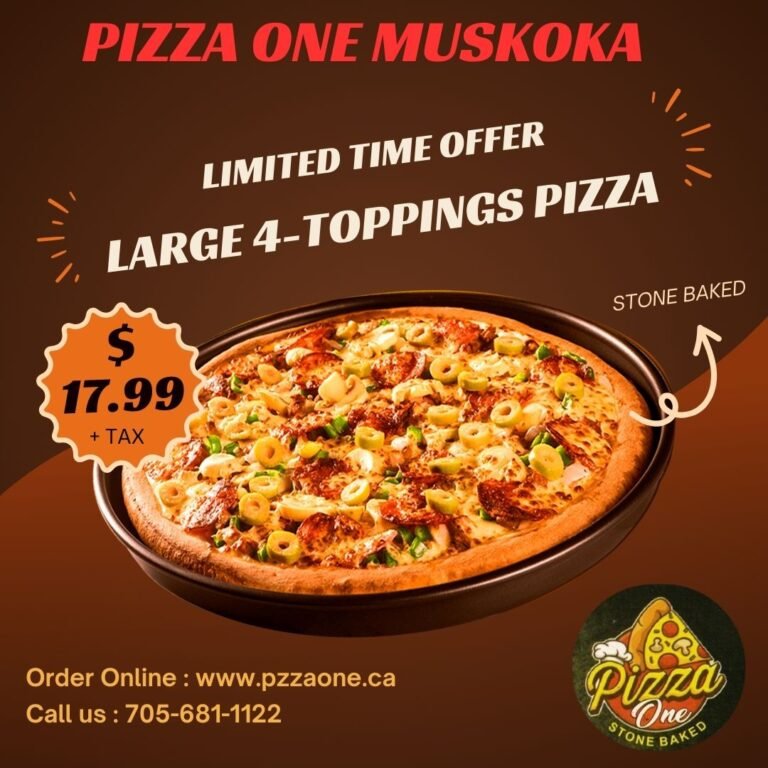 Welcome to Pizza One Muskoka, Gravenhurst’s oldest and Halal pizzeria in town! As a family-operated business, we’ve been serving the community for years with pride and passion. Known for our signature stone-baked pizzas, we craft each pie to perfection, featuring a unique, crispy crust and premium toppings that set us apart. Every pizza is made with care, using high-quality ingredients and traditional techniques to deliver unforgettable flavors. Whether you’re dining in or taking out, Pizza One Muskoka is your destination for Halal, and delicious stone-baked pizzas. Menu items: Stone Baked Pizzas, Wraps, Chicken Wings, Salads, Kawartha Dairy Ice Cream.